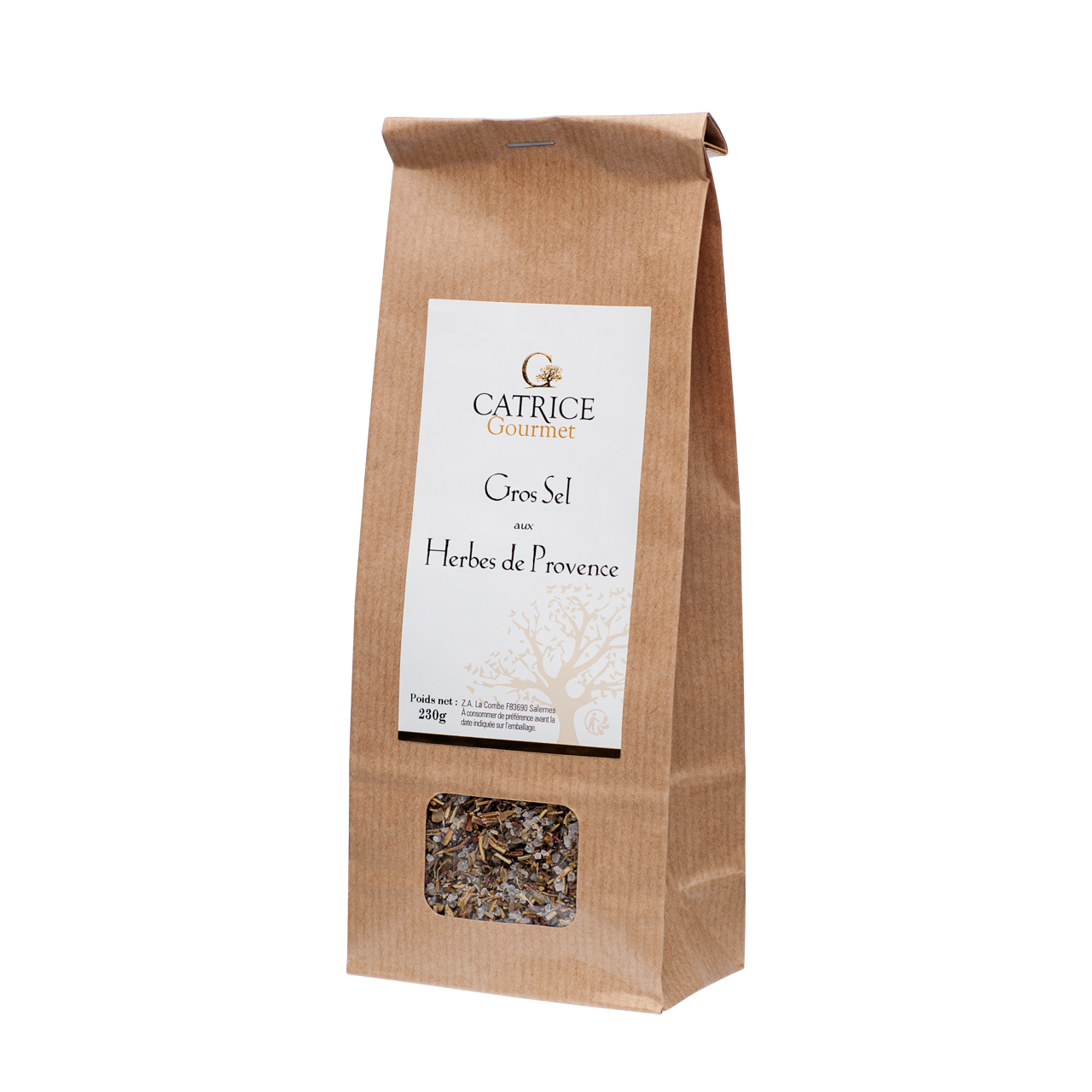 Ingredients : sea salt 89.7%, herbs de provence 10.3% (rosemary, basil, thyme, marjoram, savory)Net weight : 230g, 23.47€ /kg