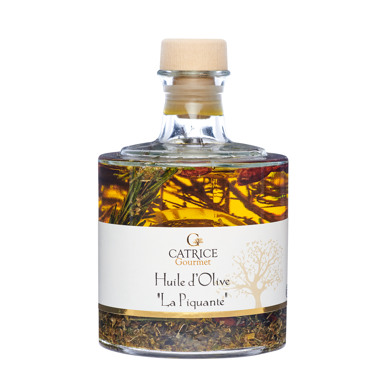 Culinary preparation based on virgin olive oil with thyme and chiliIngredients : virgin olive oil 95.6% (EU origin), natural chili flavouring, chili, rosemary, thyme, bay leaf
