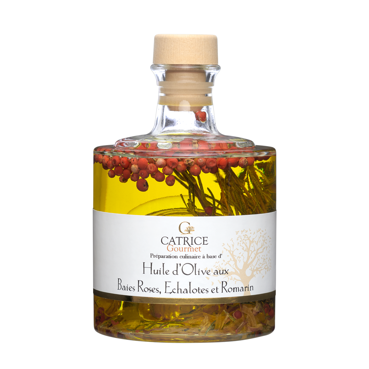 Ingredients: virgin olive oil 96% (EU origin), pink peppercorns 2%, shallots 1%, rosemary 1%