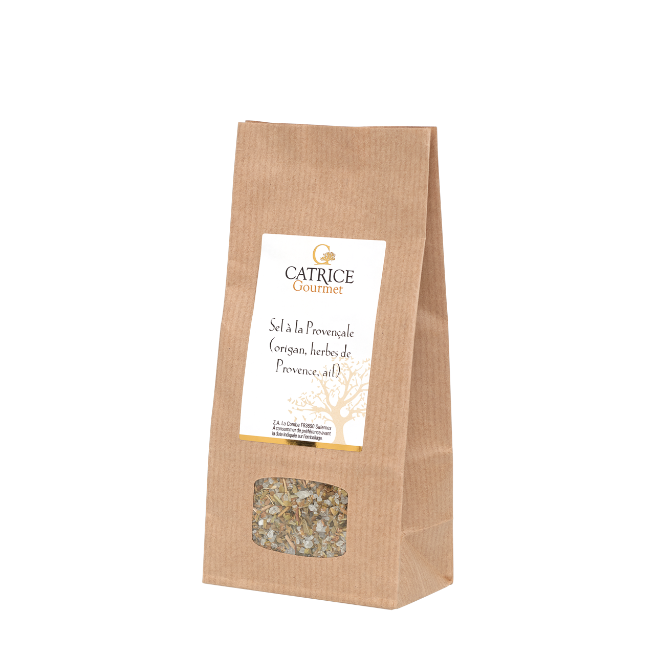 Ingredients: coarse salt 94%, oregano 3.5%, Provence herbs, garlic
