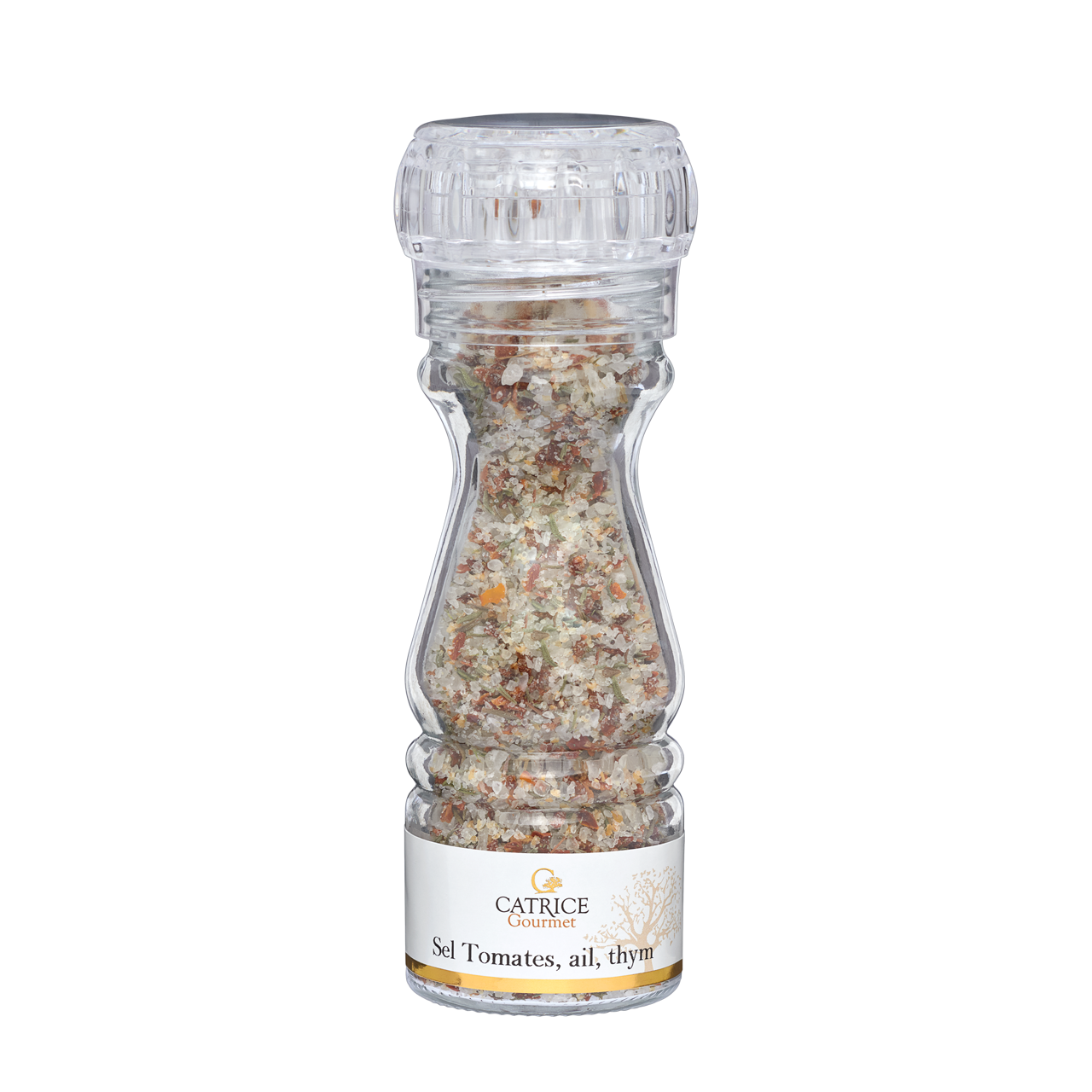 Store at room temperature, in a dry place away from heat and humidity. Product subject to dryingIngredients : coarse salt 87%, dried tomato 7%, garlic 4%, thyme 2%